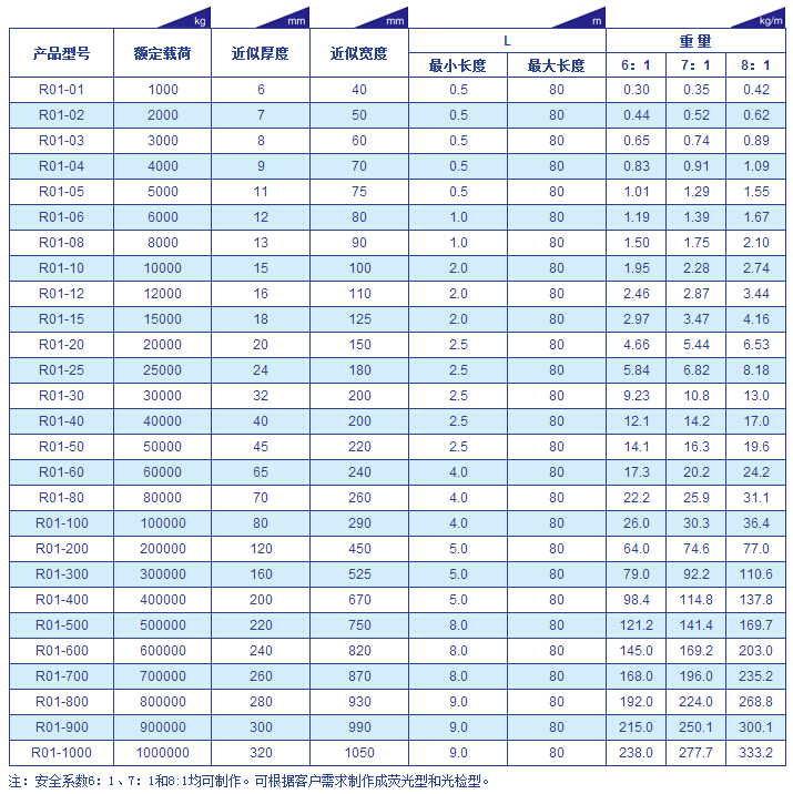 巨力R01型(環(huán)形)吊裝帶參數(shù)表