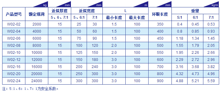 巨力W02型(重型環眼型) 是以國際上優質合成纖維為原料,使用了國際上先進的織造技術和設備,經過不同的縫合方式縫制而成,它的生產是按照國家標準嚴格執行的,在吊裝作業時,不會斷開對人身造成傷害,而且它表面平滑,也不會對被吊物造成傷害。