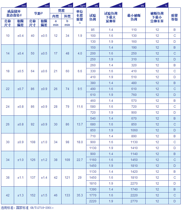 巨力礦用高強度圓環(huán)鏈參數(shù)表