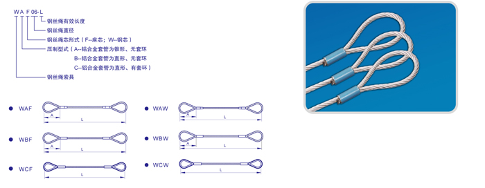 直徑φ90以上壓制鋼絲繩索具形式為每端壓制兩個鋁合金壓制接頭;