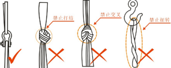 1、在使用吊裝帶捆綁重物時,采用了栓結的方式進行了環繞,容易導致吊裝帶表面受損;