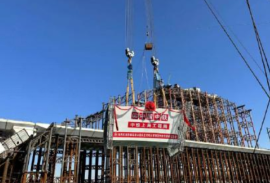 隨著現場一聲令下,吊裝作業開始展開,只見龐大的的拱肋節段在柔性吊裝帶的牽引之下緩緩升起在多方的監控下緩緩移動,進行位置的調整,最終該拱肋精準落位,為永定河特大橋的主體結構完工打下了基礎。